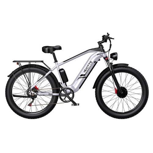 F26 E-BIKE: Sleek design with no exposed batteries. Single motor power is strong, but the F26 dual motor delivers an adrenaline rush. Conquer complex terrains effortlessly with this sporty fat tire bike.